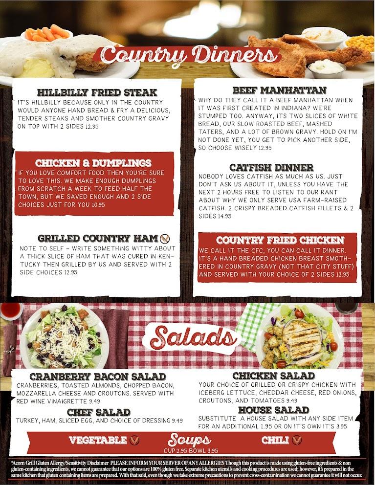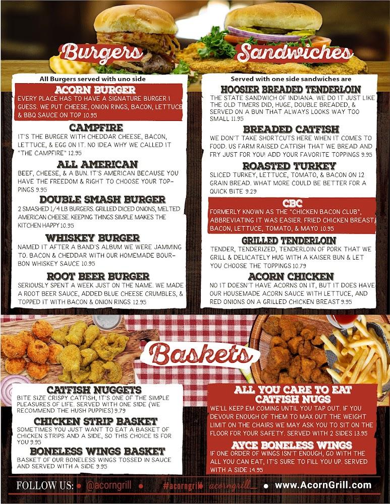 Acorn Grill offers a varied menu that reflects American dining culture. From burgers to country classics, dishes cater to diverse palates. A focus on fresh ingredients ensures that every meal resonates with quality and taste. Popular categories include burgers, sandwiches, and family meals.